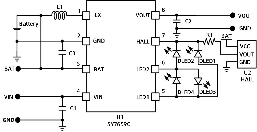SY7659是一款專為藍牙耳機充電倉設(shè)計的單芯片解決方案IC,芯片集成充電管理模塊、LED電量顯示模塊、同步升壓放電管理模塊,簡化了外圍電路及器件數(shù)量。針對藍牙耳機充電倉的應(yīng)用,提供更簡單易用的高性價比解決方案。